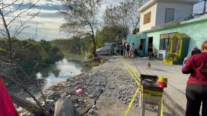 Elementos de Protección Civil de Escobedo acudieron a un reporte por el deslave de un talud que afectó los patios traseros de dos viviendas ubicadas en las márgenes del Río Pesquería, en la colonia Emiliano Zapata.