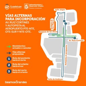 El Gobierno de Guadalupe implementa alternativas viales para agilizar el tráfico vehicular en avenida Ruiz Cortines y carretera a Dulces Nombres.