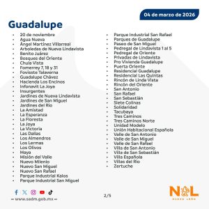 La suspensión afectará a distintos sectores y colonias de los municipios de Guadalupe, Apodaca y San Nicolás de los Garza.