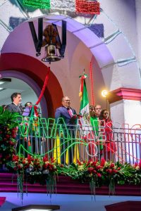 El repique de la campana y las voces unidas hicieron temblar de emoción la Plaza Principal, donde gente ondeaba banderas, las luces tricolores iluminaban el cielo, y el eco del grito llenaba cada rincón con un orgullo que solo la noche del 15 de septiembre sabe regalar.