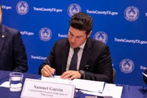 También firmaron el acuerdo el Juez Andy Brown de Travis County y el Juez Rubén Becerra de Hays County